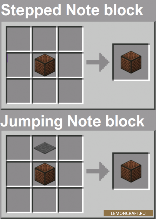 Мод на музыкальные блоки Extended Noteblock добавляет в игру два новых, прикольных блока, которые будут издавать различные звуки. Один из этих блоков издаст звук, если на него наступить, второй же издаст звук если на него прыгнуть. Комбинируя данные блоки вы сможете создавать свои уникальные мелодии.